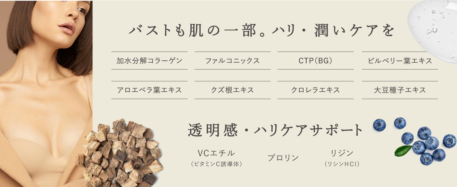 ハリ・保湿・肌コンディションのケアを目的としたバストライン用ジェル