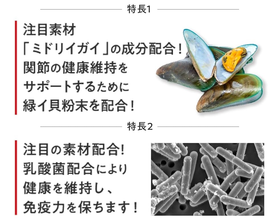 1-3.主な成分・機能説明(緑イ貝、乳酸菌など)