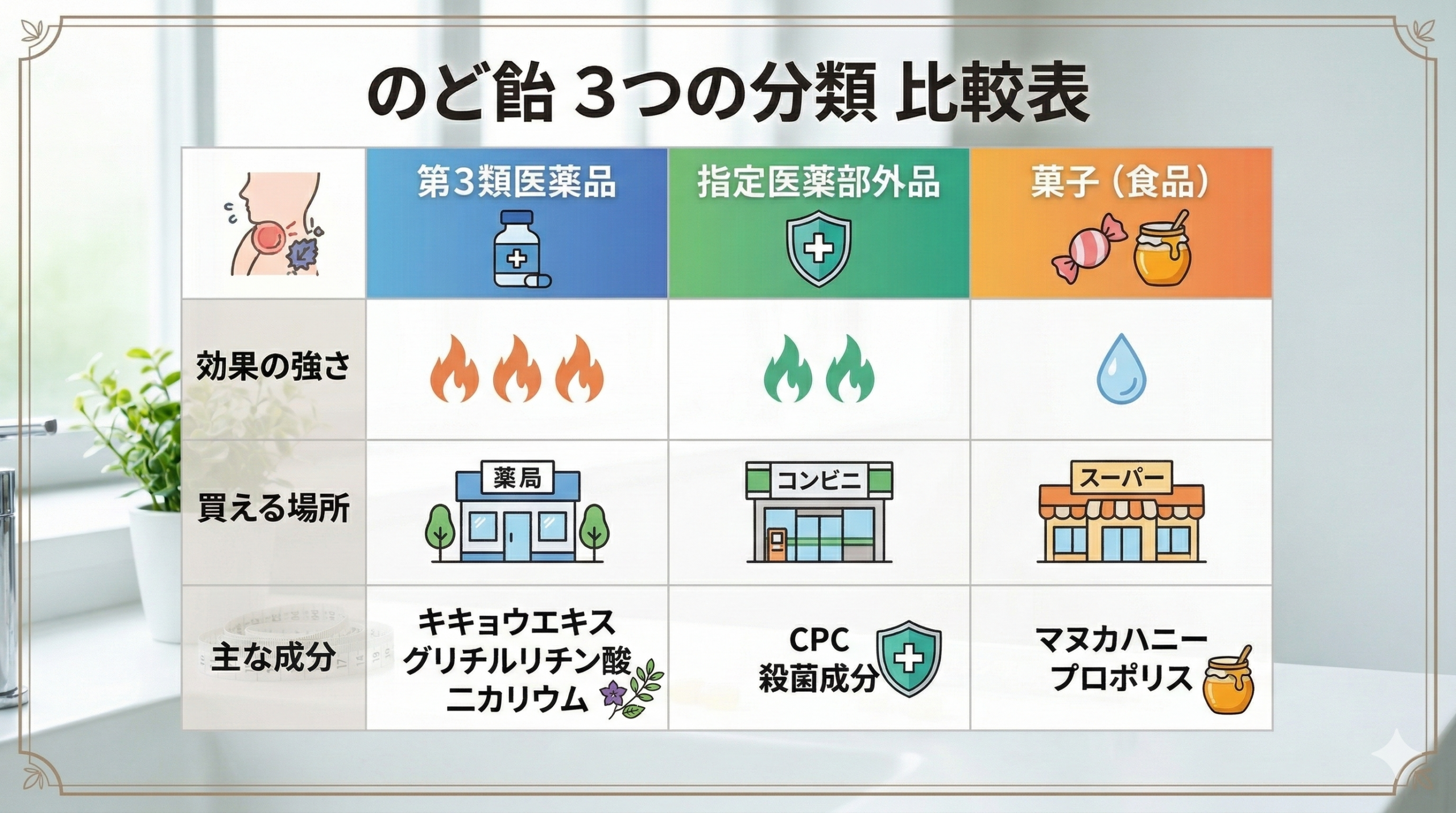 のど飴は、自分の症状に合わせて「分類」と「成分」で選ぶのが最強への最短ルートです。