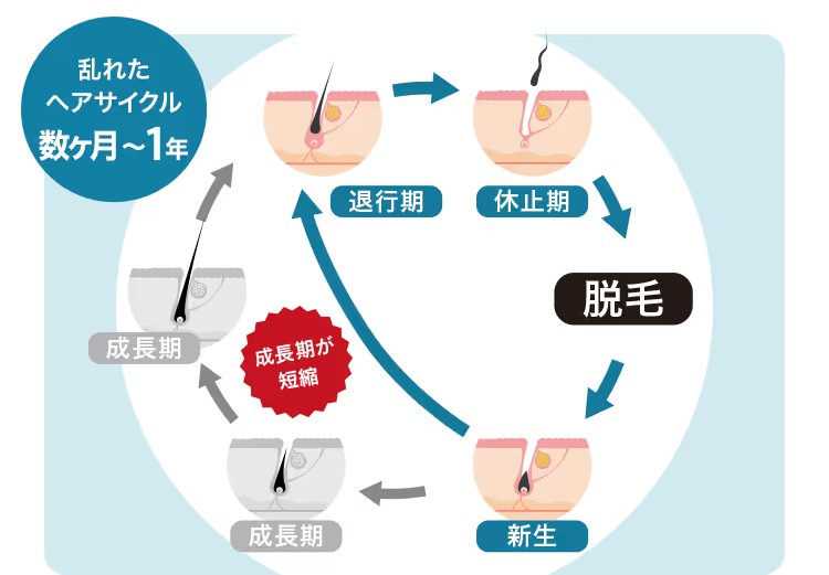 副作用と勘違いしてパニックになる人も多いですが、これはヘアサイクルが正常化に向かうメカニズムの一環と言えます。