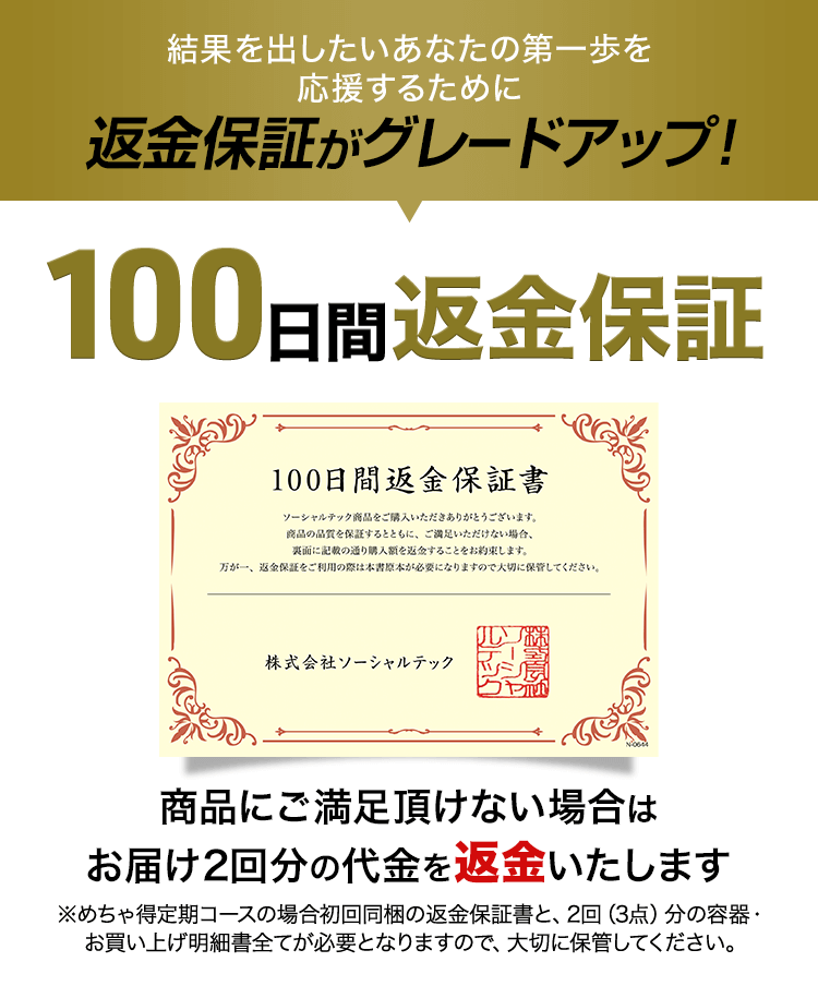 「もし効かなかったらお金がもったいない」というリスクを完全にゼロにするために、この3点だけは金庫に入れるつもりで大切に保管しましょう。